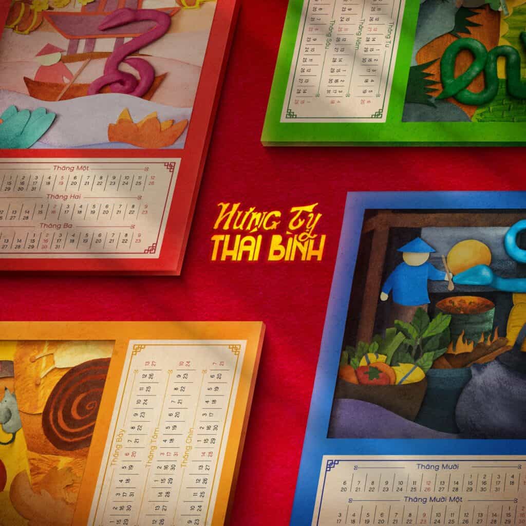 Lấy cảm hứng từ bức họa Tứ Bình – dòng tranh dân gian tượng trưng cho sự chuyển mình hài hòa của đất trời, dự án sáng tạo “Hưng Tỵ Thái Bình” là bộ lịch bốn mùa khắc họa câu chuyện loài Rắn sát cánh người lao động Việt, cũng như mang đến lời chúc về một năm Ất Tỵ đầy thịnh vượng và ấm no.